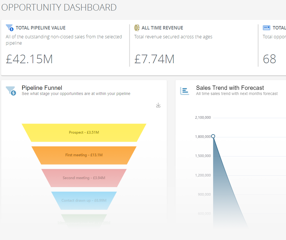 Clockwork CRM let's you add as many pipelines and stages as you need for your processes. Assign properties to each stage making your sales pipelines flexible and unique.